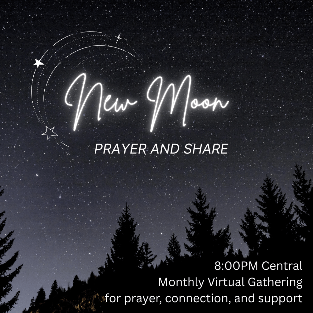This virtual community prayer circle is facilitated by priestess Jennifer RoseMary and will meet on Zoom at 6pm Pacific / 7pm Mountain / 8pm Central / 9pm Eastern on each New Moon evening. Check out the calendar page for dates and zoom links.